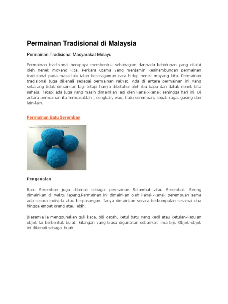 Permainan tradisional pada umumnya adalah merupakan permainan yang dicipta oleh masyarakat tradisional pada zaman dahulu iaitu merujuk kepada permainan budaya yang sudah diamalkan oleh sesua…full. Posted by unknown at 23:43. Budaya malaysia (permainan tradisional) all. Malaysia · 1 decade ago. Sebenarnya, hampir semua daerah di indonesia punya permainan tradisional yang seru untuk dimainkan dan dapat memicu kreativitas sekaligus menyehatkan tubuh. I am a singaporen and my husband is a malayisan , i have a long term visa pass in malaysia, when can i enter johore bahru? Sebagai rekomendasi, berikut ini 11 permainan tradisional indonesia yang menarik untuk dimainkan anak dan remaja. Ia merangkumi semua permainan suku kaum di malaysia dan luar malaysia. Vas bunga contoh gambar guci 3 dimensi. Permainan tradisional satukan pelajar malaysia di luar negara astro awani lupakan gajet buat seketika harian metro gambar permainan tradisional melayu. Salah satu makanan tradisional melayu yang menjadi kegemaran ramai tak kira kaum dan bangsa di malaysia adalah rendang. Aktiviti ini kebiasaannya akan dilakukan secara berkumpulan dimana mereka mempunyai minat yang. Video ini adalah untuk kos ctu553 ethnic relations yang menerangkan permainan tradisional di malaysia.