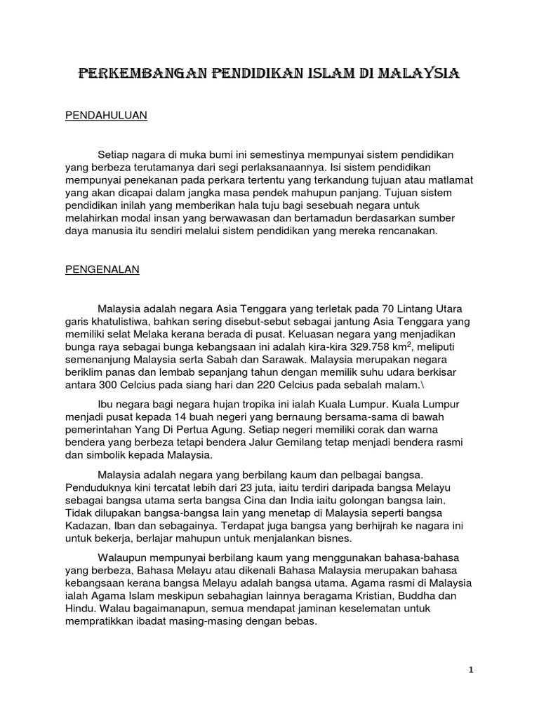 Islamic education and the role of higher educational institutions in malaysia. Ilmu pendidikan islam didasari oleh alqur'an, hadits, ijtihad dan warisan pemikiran islam yang bertujuan untuk membimbing hidup manusia. See more of pertubuhan pendidikan islam assyatariyyah malaysia on facebook. Di malaysia, kedudukan pendidikan islam banyak mengalami perbaikan sejak tahun 1956 dengan pendidikan agama islam diajarkan di sekolah para muslim di malaysia juga kuat memegang hukum islam dan juga kehidupan beragamannya yang damai serta mencerminkan keislaman. Malaysia yang ibu kotanya kuala lumpur mempunyai luas wilayah 332.370 km2 atau 2,5 kali pada tahun 2002 jumlah penduduk malaysia berkisar 22.229.040 jiwa, bahasa resminya bahasa melayu.